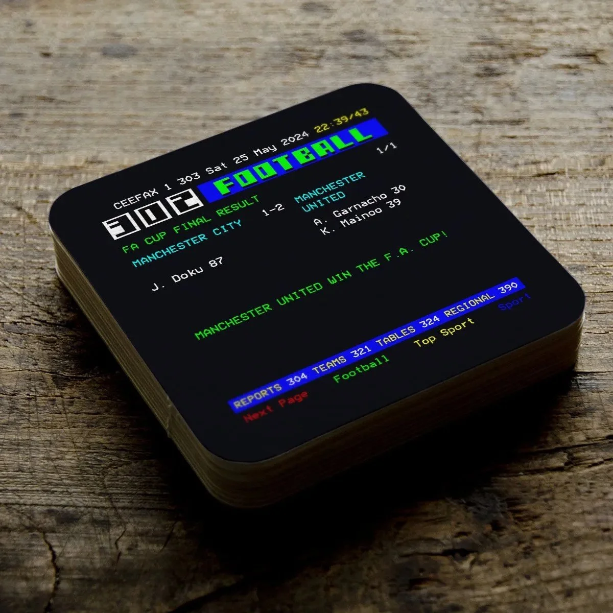 Man Utd FA Cup 2024 “Ceefax Style” Match Result Coasters - £19.95