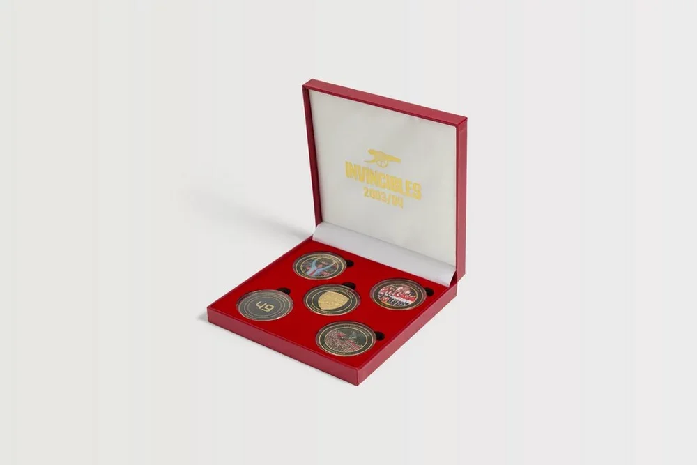 The Arsenal Invincibles Coin Collection is a piece of memorabilia that focuses on the history of Arsenal Football Club rather than just the display of the gift. The gift is designed to mark one of the club’s biggest achievements—the unbeaten 2003/04 season—and does so in such a unique way.